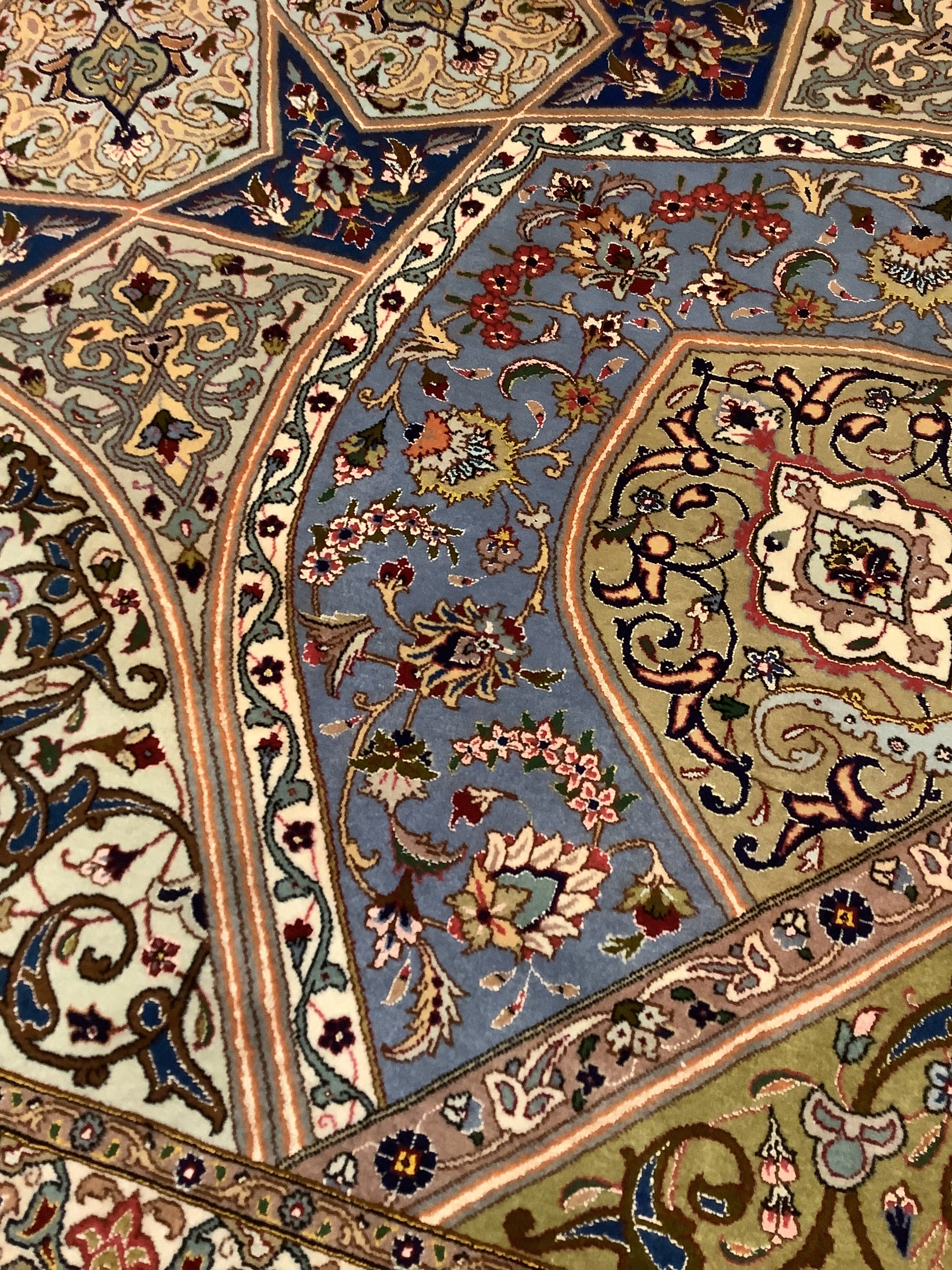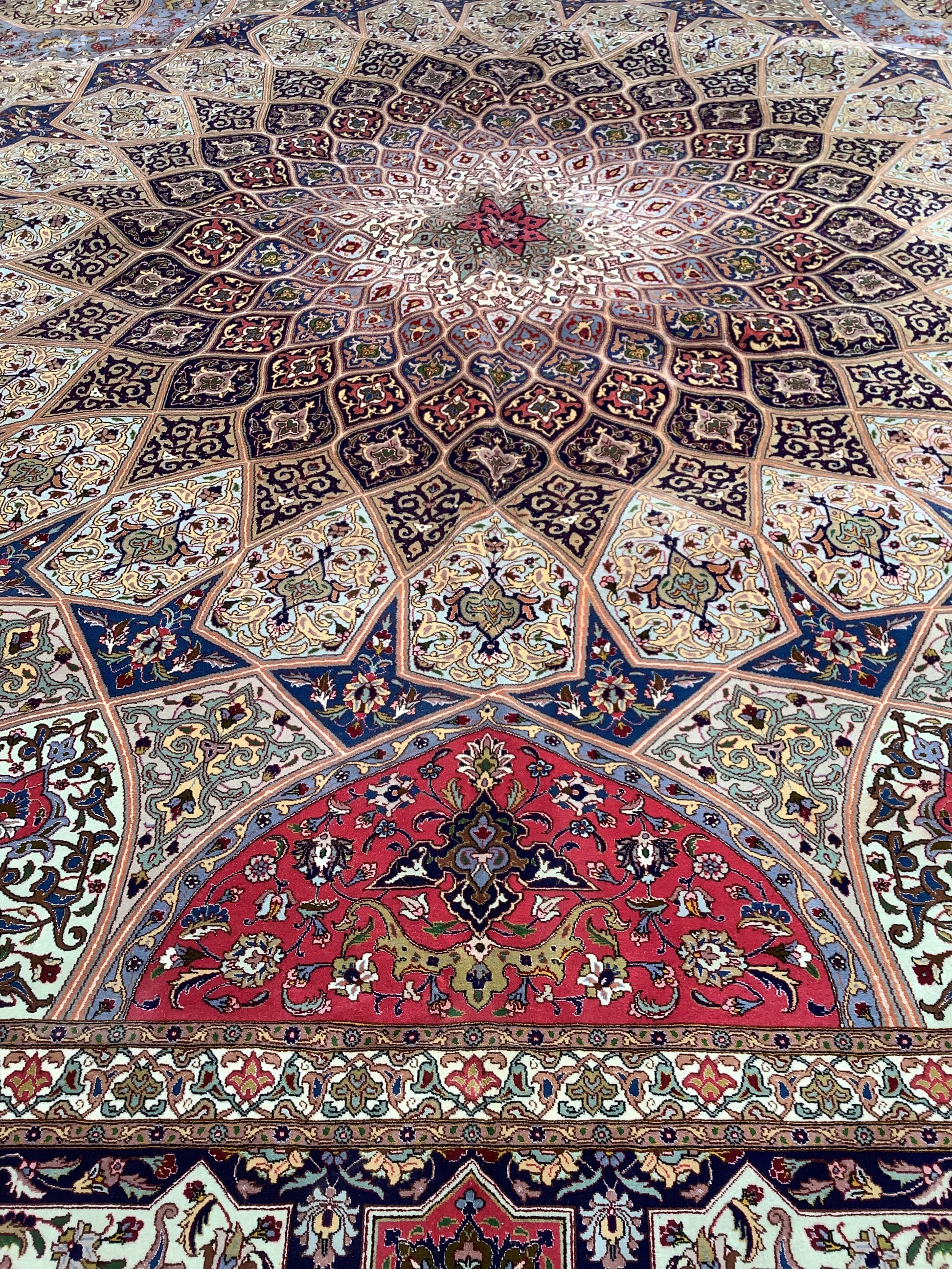 Stunning-- an oversized large silk and wool Tabriz with the famous Gombad dome of the mosque design based on medieval Islamic architecture.