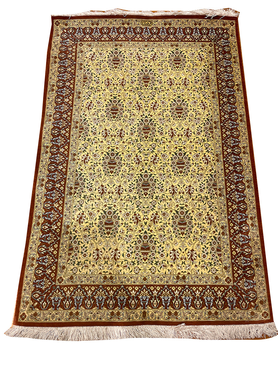 Signed pure silk Qom with the royal Qajar vase design
