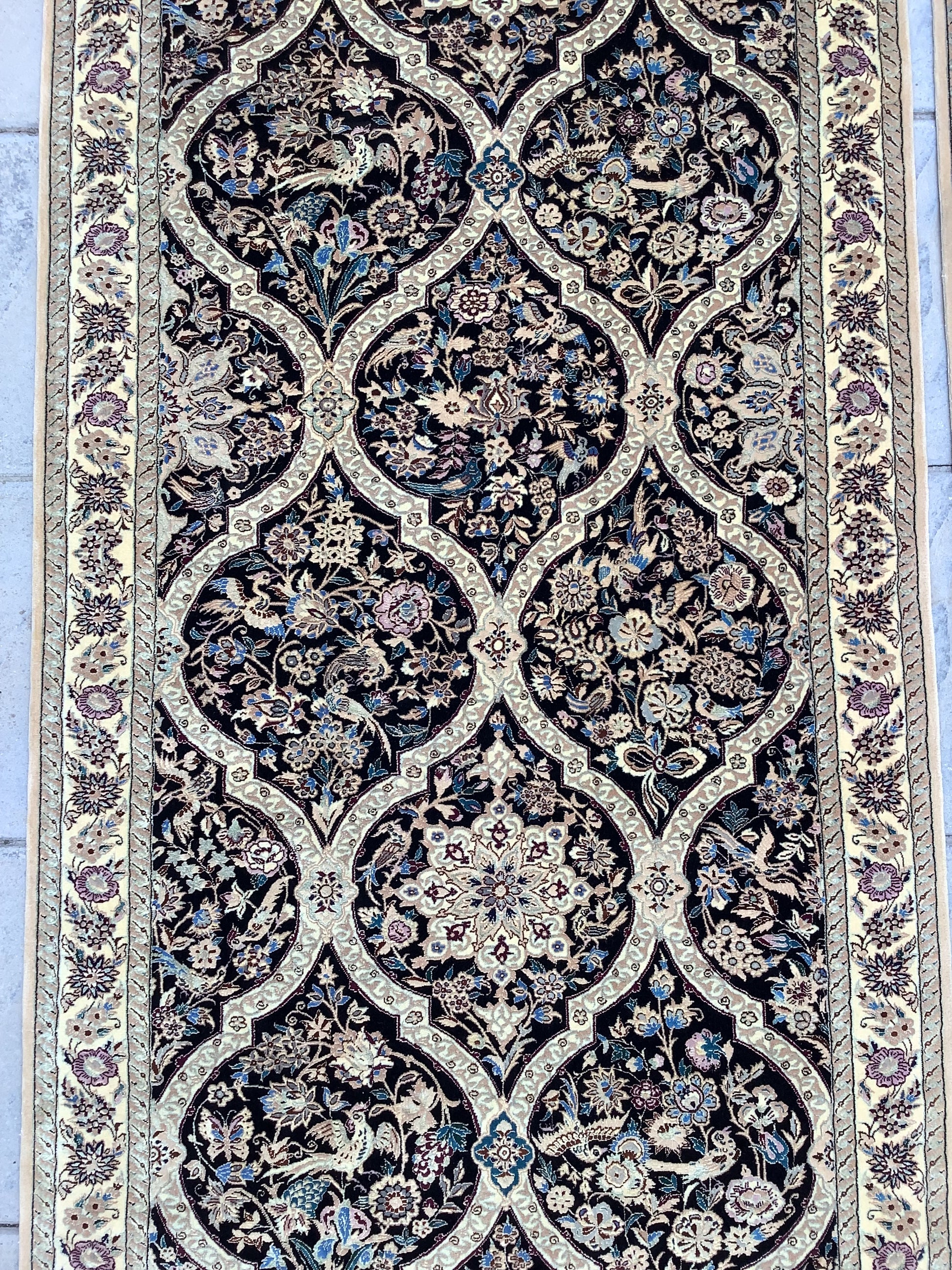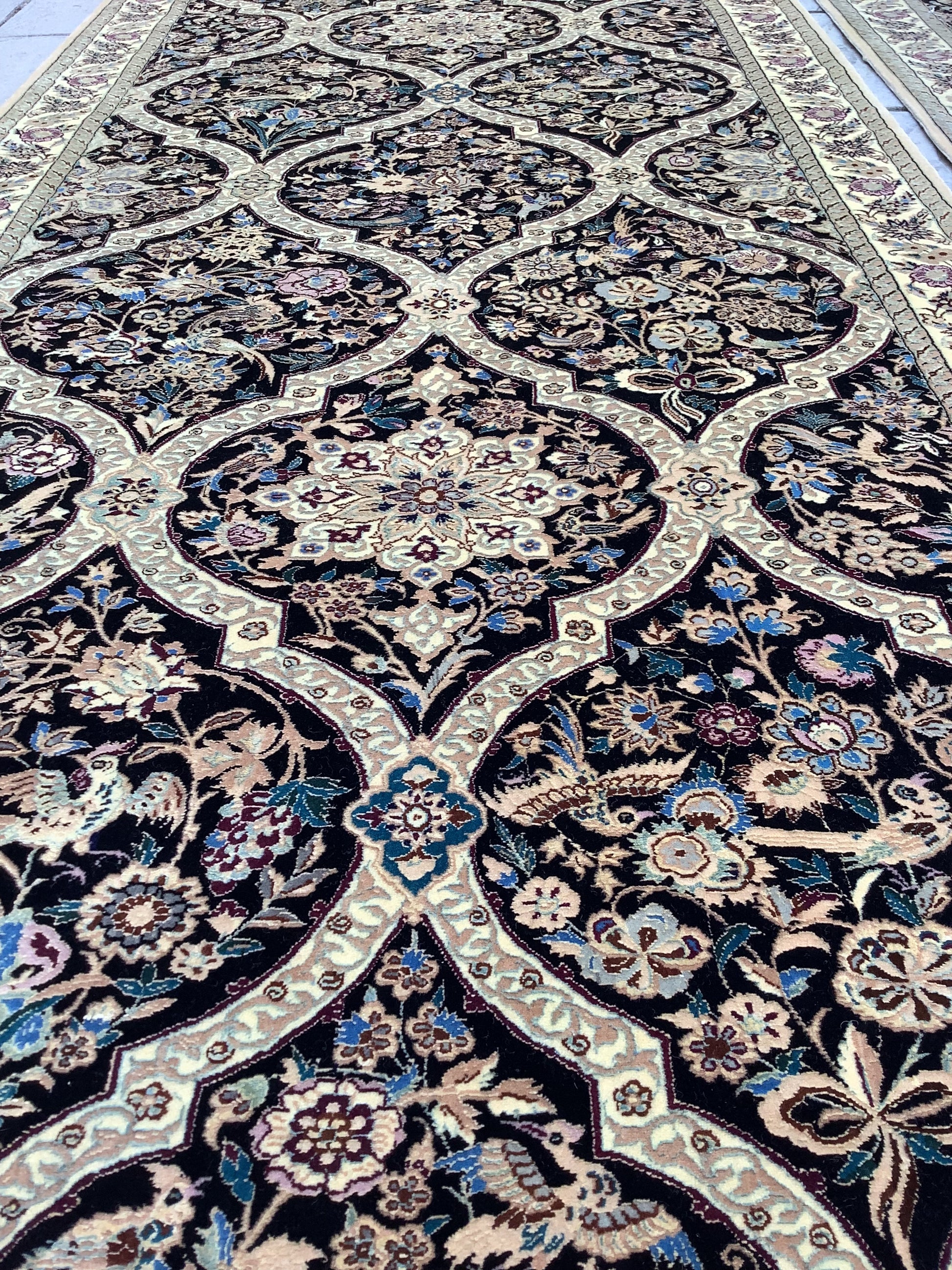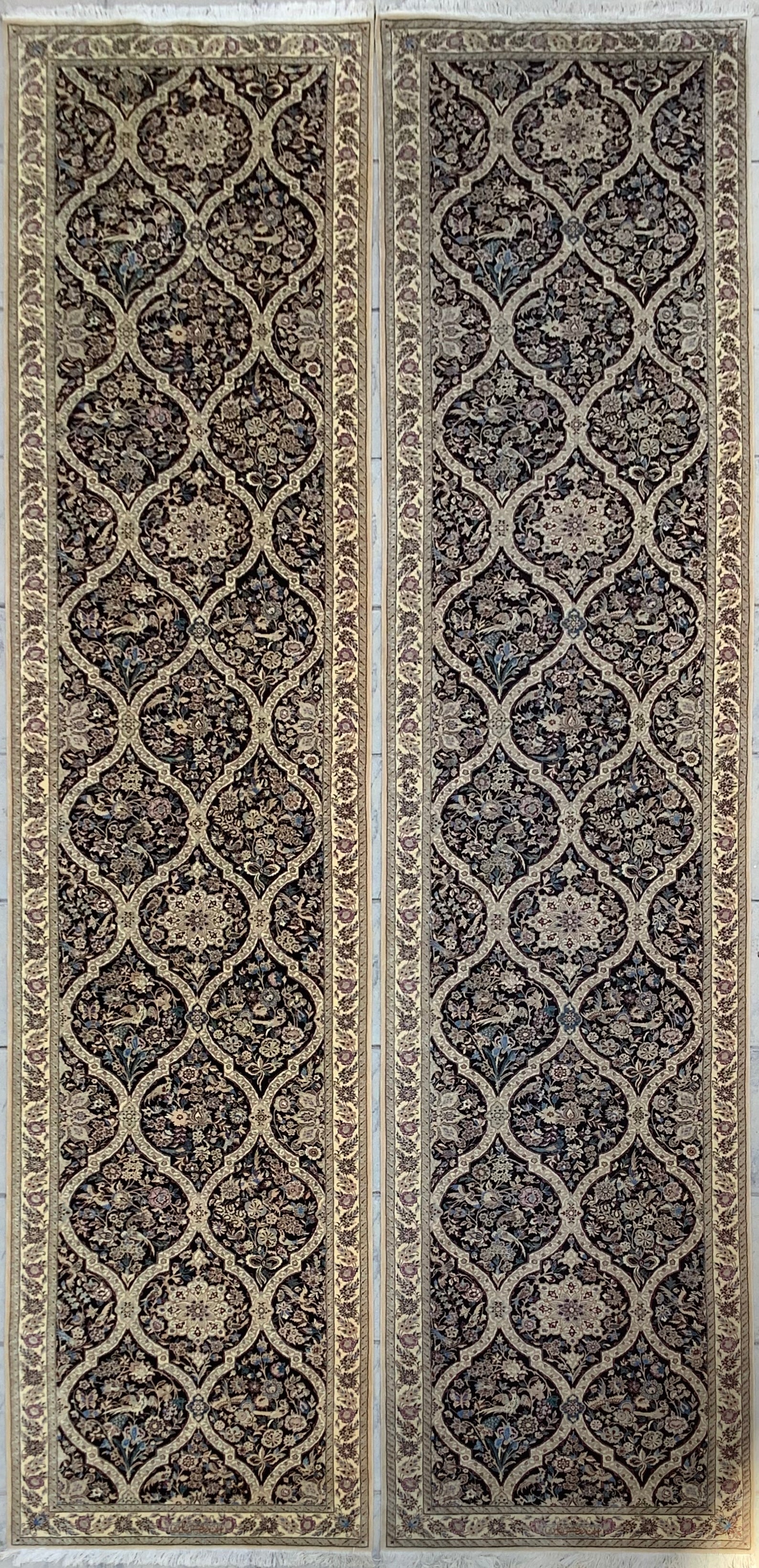 Remarkable theme of roses and nightingales within a latticed or compartment layout