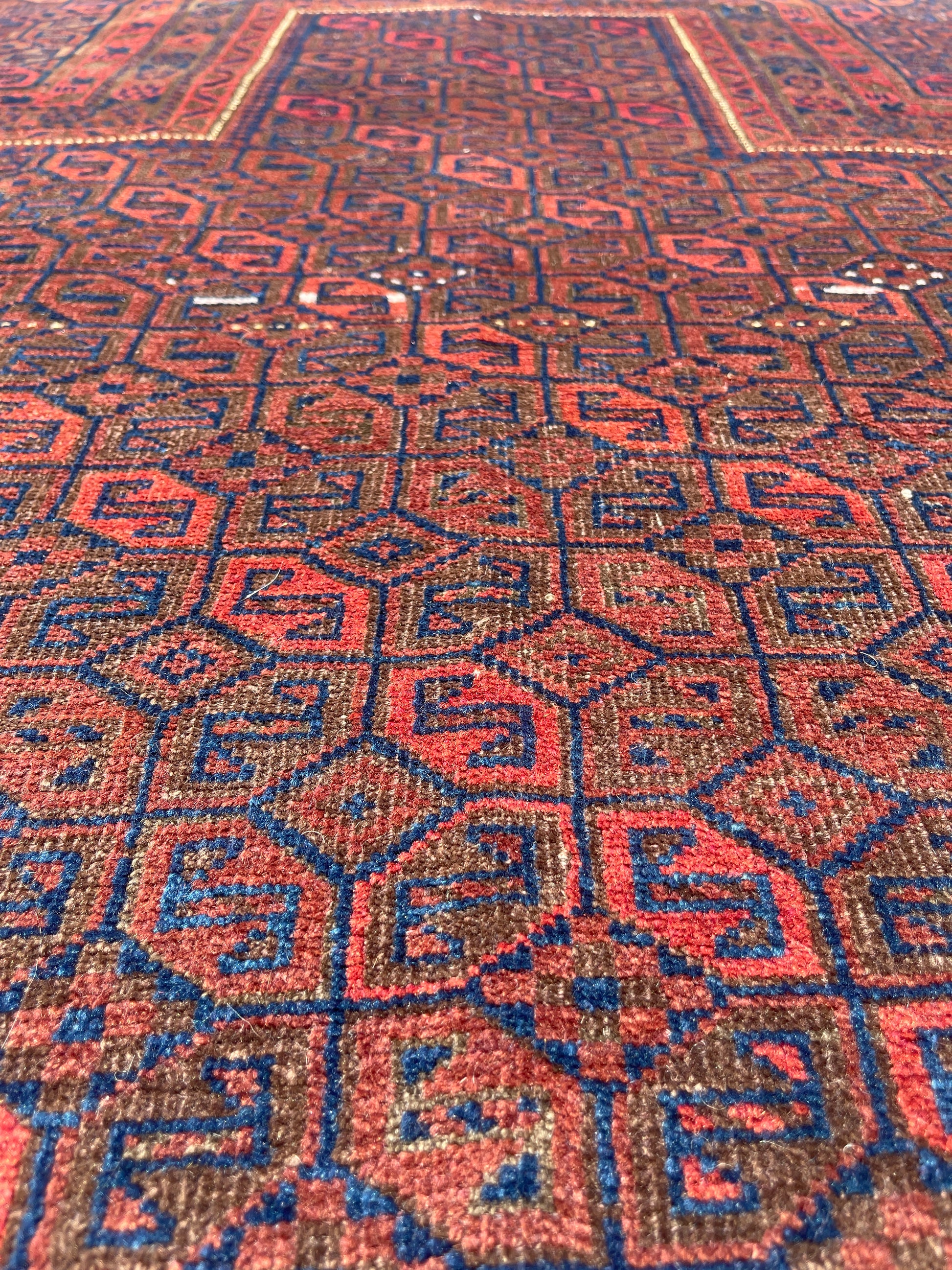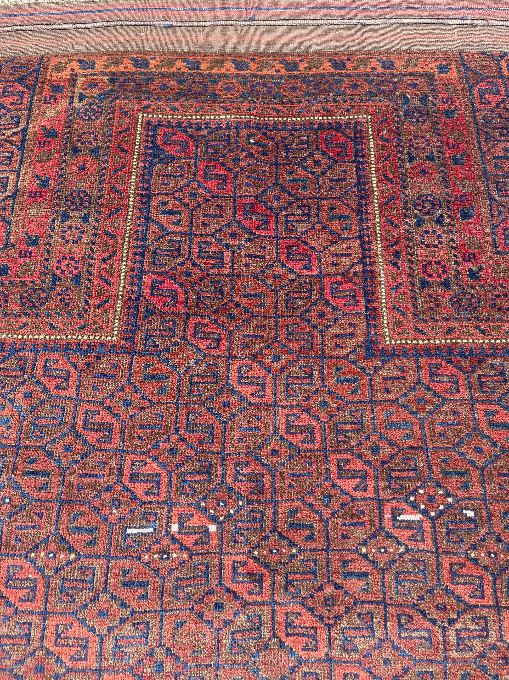 Perfect condition with extravagantly long end kilim skirts. Can you spot the band of undyed white running across the central section of the rug?